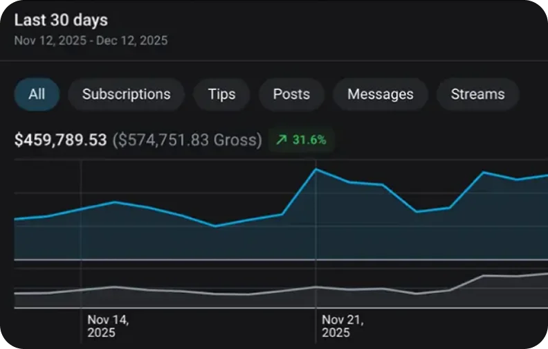 This creator came to us as a SA creator stuck just over $1K/month. She had potential, but no system. No direction. No strategy. We didn't just manage her account—we transformed her entire approach. In-person shoots. Direct content direction. Brilliant positioning that resonated with US audiences.